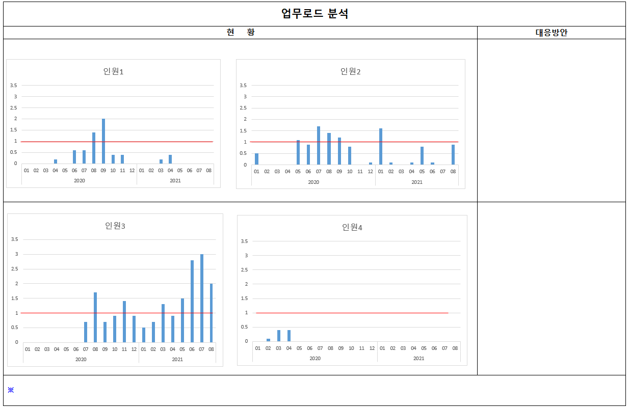 품질부서의 경우, 업무 카테고리별로 수행하는 업무들이 정해져 있는 경우가 많기 때문에 지난 1년간의 실적으로 업무로드를 분석해 볼 수 있습니다.